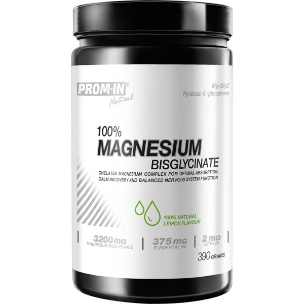 100 % Magnesium Bisglycinate obsahuje hořčík ve formě vysoce využitelného bisglycinátu hořečnatého. Tato forma reprezentuje minerály v tzv. chelátových vazbách. Výhodou minerálů v těchto vazbách je to, že jsou elektricky neutrální a lépe se dostávají v nezměněné podobě na místo určení v organismu. 100 % Magnesium Bisglycinate je ideálním doplňkem stravy pro osoby vystavené zvýšené fyzické zátěži.