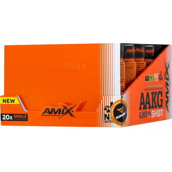 AAKG 4000 mg Shot je tekutá forma L-argininu alfa ketoglutarátu v kombinaci s glycerolem GlyceroMax® v kapesním balení ampulí. L-arginin je aminokyselina, která je v organismu zdrojem oxidu dusnatého (NO), který způsobuje uvolnění a rozšíření cév. To napomáhá většímu přívodu kyslíku a potřebných živin pro kosterní svalstvo. Díky jednotlivým ampulím si jej můžete snadno vzít kamkoli!