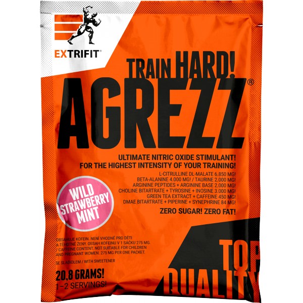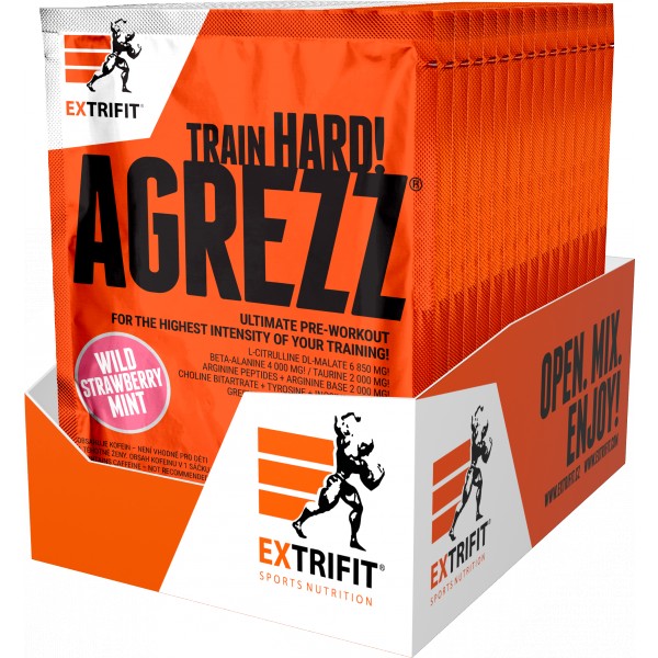 Agrezz je profesionální předtréninkový produkt pro nejnáročnější uživatele. Obsažené účinné látky vyhledávají nejčastěji sportovci, kteří usilují o maximální koncentraci, prokrvení svalů a zvýšení tréninkové intenzity a vytrvalostní kapacity. Díky obsaženým extraktům je produkt vhodný i pro trénink v rýsovací fázi. Efekt tohoto přípravku je dán unikátní kombinací stimulantů produkce NO (oxidu dusnatého) citrulinu, beta alaninu a argininu, stimulačních látek kofeinu a taurinu, dále extraktu z plodů pomerančovníku hořkého (synefrinu), ze zeleného čaje, extraktu z černého pepře (piperinu), cholinu a tyrosinu.