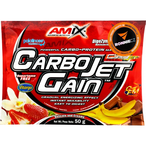 CarboJet™ Gain je speciální sacharidoproteinový práškový koncentrát. Obsahuje vysoce kvalitní bílkoviny Amix™ Protein Blend a exkluzivní komplex sacharidů Amix™ CarboJet™ Matrix zahrnujících vysokomolekulární škrob Vitargo® a postupně vstřebatelnou isomaltulózu Palatinose®. Neobsahuje aspartam. Obsažené bílkoviny přispívají k růstu a udržení svalové hmoty.
