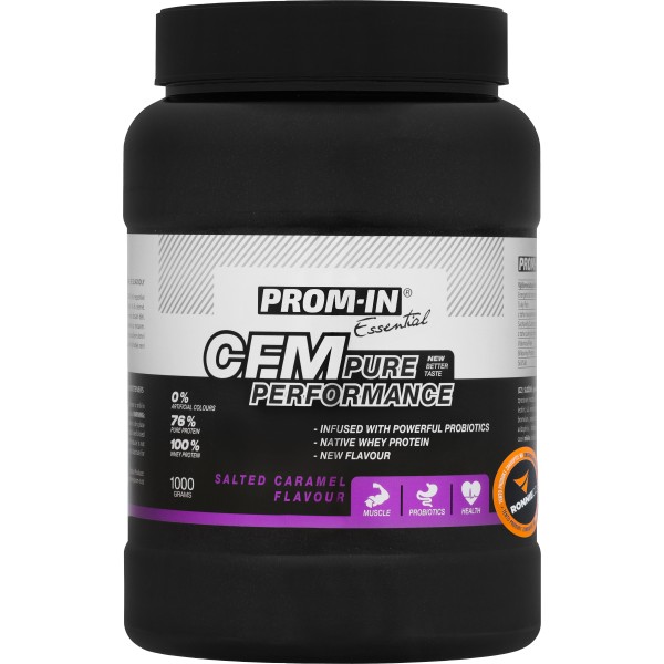 CFM Pure Performance je vysokoprocentní proteinový nápoj vyrobený metodou CFM (cross flow microfiltration – mikrofiltrace zkříženým tokem přes keramické filtry), která zachovává maximum bioaktivních frakcí původní suroviny. 100% CFM syrovátkový koncentrát, 0 % umělých barviv. Bílkoviny podporují tvorbu svalové hmoty.