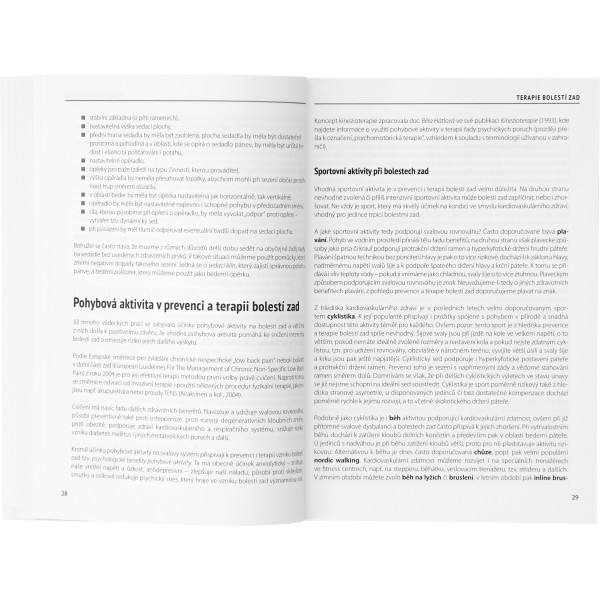 V úvodu knihy jsou stručně vysvětleny příčiny bolestí zad, možnosti jejich terapie a autoterapie a význam pohybové aktivity v jejich léčbě. Čtenáři se seznámí i s možnostmi autodiagnostiky vadného držení těla, zkrácených a oslabených svalů apod. Pozornost je věnována aktivitám běžného života, jako je sed, stoj, zvedání a nošení břemen apod., a také problematice ergonomie a jejího významu pro prevenci a terapii bolestí zad. Jedna kapitola je zaměřená na vhodné a nevhodné sportovní aktivity při bolestech zad a zásady jejich provádění.