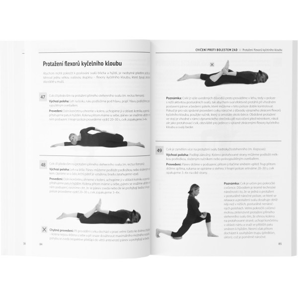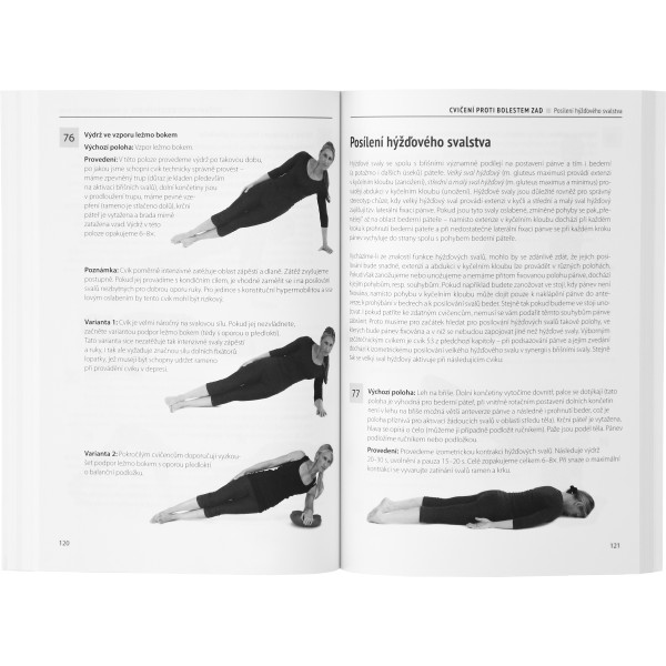 Hlavní část knihy tvoří zásobník více než 150 cviků s přesným popisem jejich účinku a provedení. Cviky jsou rozděleny podle účinku na protahovací, posilovací, uvolňovací a balanční, a rovněž podle úseků páteře a svalových skupin, na které jsou zaměřeny. Jsou popsána i dechová a relaxační cvičení.