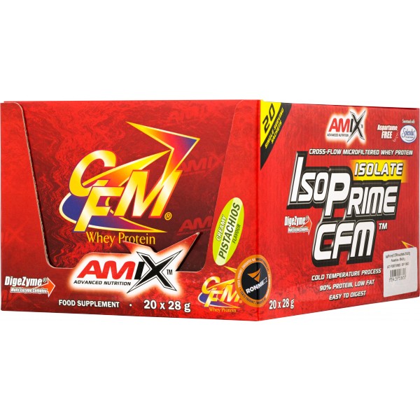 IsoPrime CFM obsahuje 90 % syrovátkového proteinového izolátu vyrobeného metodou CFM (cross-flow microfiltration). Tato metoda zaručuje maximální čistotu. Přináší plné spektrum aminokyselin přirozeně se vyskytujících v syrovátkovém proteinu, včetně vysoké koncentrace BCAA a jiných esenciálních aminokyselin. Obohacen o trávicí enzymy DigeZyme. Neobsahuje aspartam, slazeno značkovou sukralózou Splenda®. Bílkoviny přispívají k růstu a udržení svalové hmoty.
