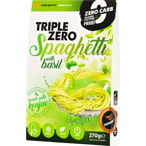 Konjakové těstoviny Triple Zero Spaghetti bez sacharidů, cukrů, tuků a bez laktózy. Neuvěřitelné, ale přesto pravda. Lahodně chutnají, zasytí a přitom neobsahují téměř žádné kalorie. Ideální do redukčních diet i jako součást zdravého životního stylu. Vhodné i pro vegetariány, vegany a diabetiky.