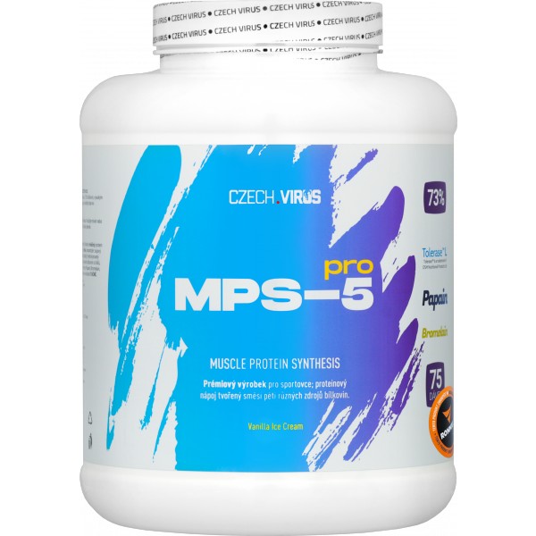 MPS-5 Pro je vysoce kvalitní vícesložkový protein složený z 5 různých zdrojů bílkovin. Největší část tvoří syrovátkový koncentrát zpracovaný metodou CFM (cross-flow microfiltration) a nativní mléčný protein (zdroj micelárního kaseinu). Zbytek tvoří CFM syrovátkový izolát, hydrolyzovaný (naštěpený) syrovátkový koncentrát a vaječný albumin. Složení reflektuje aktuální studie pro nejideálnější složení proteinu pro maximální anabolismus. To vše navíc doplňují enzymy Tolerase™ L, papain a bromelain pro maximální využití bílkoviny a štěpení laktózy.