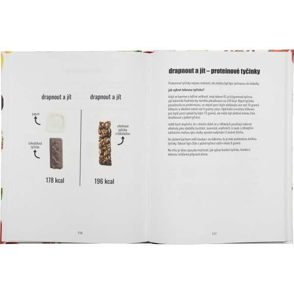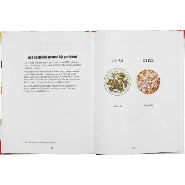 Představ si dva talíře. Talíř zeleniny a talíř sušenek. Polož si dvě otázky. Kolik energie je na každém talíři? Kolik živin je na každém talíři? Talíř sušenek má docela hodně energie, ale málo živin. Naopak talíř zeleniny má docela málo energie, ale živin podstatně více. To je zdravý způsob, jak o jídle přemýšlet. Jídlo není špatné, dobré, opravdové, neopravdové. Jídlo je jídlo. Kniha chce vnuknout myšlenku, jak jíst normálně. A co to je? Cítit se dobře po fyzické i psychické stránce, mít informace o tom, co strava obsahuje, ale nenechat se tím v určitých situacích zbytečně omezovat.