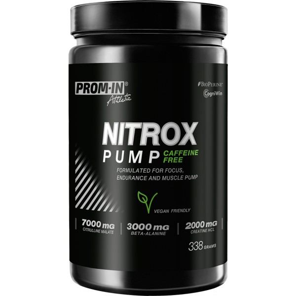 Nitrox Pump Caffeine Free je pre-workout pro sportovce, kteří dokážou v krátkém čase vytvořit brutální intenzitu a nepotřebují kofein ani žádné stimulanty. Stojí na synergii citrulinu, AAKG, beta-alaninu a kreatinu HCl, které vytvářejí podmínky pro nekompromisně tvrdé série. Neurofokus komplex (tyrosin, theanin, CDP-cholin) podporuje pozornost a kontrolované řízení intenzity — s klidným nástupem bez stimulantů. Nitrox Pump Caffeine Free je navržený pro ty, kteří nepotřebují stimulovat. Pro sportovce, kteří trénují tvrdě, rychle a naplno — a chtějí produkt stejně poctivý, jako jsou oni sami.