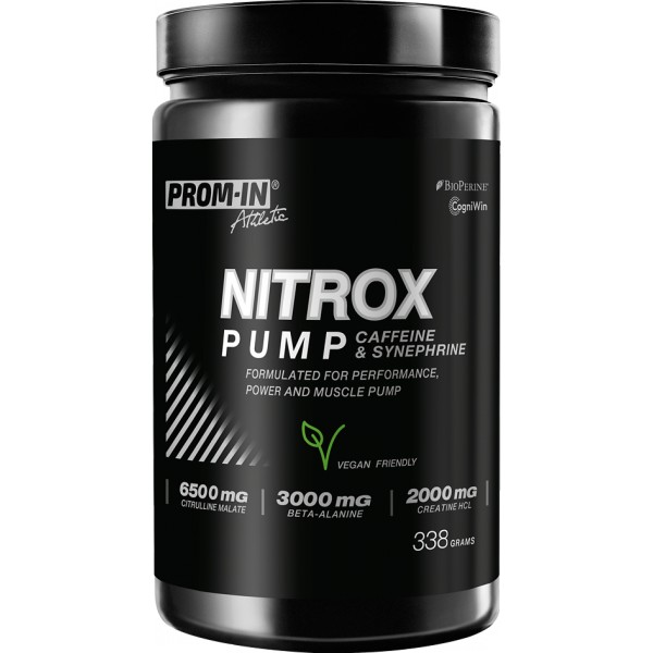 Nitrox Pump Caffeine & Synephrine je pre-workout pro sportovce, kteří dokážou v krátkém čase vytvořit brutální intenzitu a potřebují zajistit prostředí, které ten nápor vydrží. Stojí na synergii citrulinu, AAKG, beta-alaninu a kreatinu HCl, které vytvářejí podmínky pro nekompromisně tvrdé série. Neurofokus komplex (tyrosin, theanin, CDP-cholin) doplněný kofeinem a synefrinem podporuje pozornost a kontrolované řízení intenzity — bez přestimulace. Nitrox Pump Caffeine & Synephrine je navržený pro ty, kteří nepotřebují motivaci, ale nástroj, který jim umožní okamžitě vystřelit a přesně zasáhnout. Pro sportovce, kteří trénují tvrdě, rychle a naplno — a chtějí produkt stejně poctivý, jako jsou oni sami.