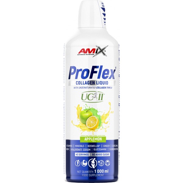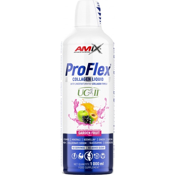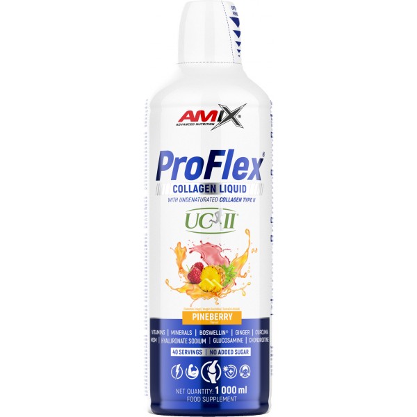 ProFlex® Collagen Liquid je koncentrát pro přípravu chutného nápoje plného vitamínů, minerálních látek, bylinného komplexu a komplexu účinných látek obsahující kolagenní hydrolyzáty – zejména UC-II nedenaturovaný kolagen typu II, glukosamin sulfát, MSM, chondroitin sulfát, hyaluronát sodný a glycin. Bylinný komplex obsahuje extrakty z kurkumy, jerlínu japonského (quercetin) a zázvoru či bromelain, kyselinu boswellovou a astaxanthin.