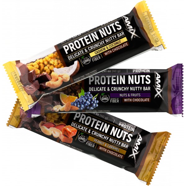 Lahodná a křupavá tyčinka plná oříšků, bohatá na bílkoviny. Na jedné straně máčená v čokoládě. Díky vysokému obsahu bílkovin a nízkému obsahu cukrů je dobrou volbou pro všechny, kteří pravidelně a tvrdě cvičí, aby dosáhli sportovní formy těla a kondice. Tyčinka zároveň poslouží dobře i do vyvážené stravy. Praktická velikost tyčinky dává příležitost vzít si ji kamkoli s sebou.