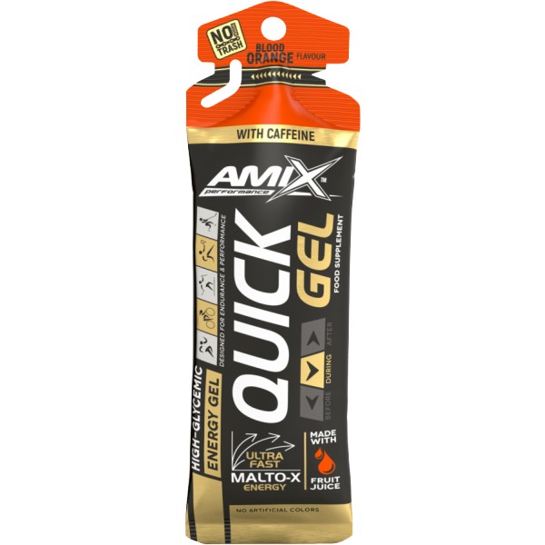 Quick Gel je extra koncentrovaný energetický gel s rychlejším uvolňováním s obsahem kofeinu v ručním balení, který Vám dodá energii po celou dobu tréninku. Obsahuje 3 druhy sacharidů plus taurin, vitamín C, B6 a hořčík pro zmírnění únavy po fyzické námaze. Vytvořen pro vytrvalost a maximální výkon. Extra rychlý, s ovocnou šťávou. Bez umělých barviv.