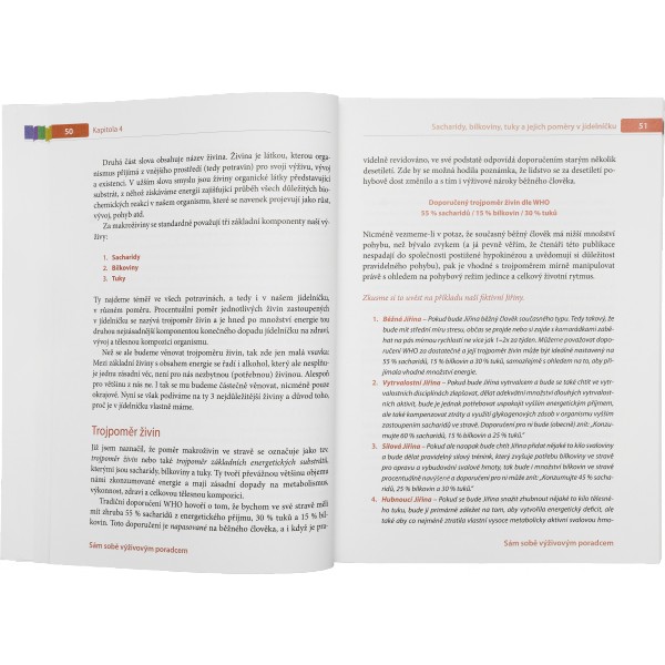 Kniha je postavená na nejnovějších vědeckých poznatcích z oblasti výživy, které jdou často přímo proti některým zažitým mýtům, s nimiž se stále setkáváme. Objevíte opravdové rozdíly mezi různými výživovými styly jako low carb, low fat, keto nebo paleo a dostanete odpovědi na to, jak se racionálně postavit k nezdravým potravinám či alkoholu. Dozvíte se, jak si sestavit vlastní jídelníček, a jak Váš životní styl ovlivňují další faktory jako pohyb, psychika, stres a hormony.