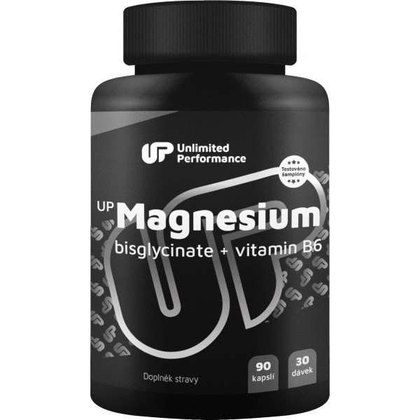 - užívejte 3 kapsle UP Magnesium Bisglycinate + Vitamin B6 denně s jídlem