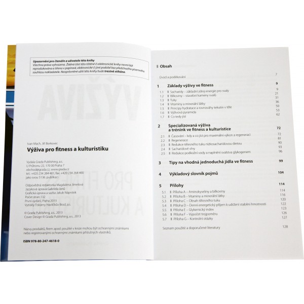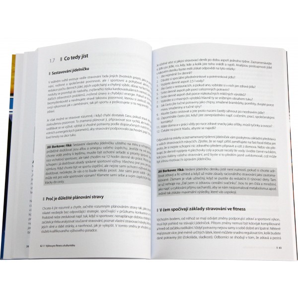 Text respektující všeobecná výživová doporučení, včetně tzv. výživových pyramid, se zaměřuje zejména na pravidla sestavování sportovního jídelníčku z potravin v běžném spotřebním koši na trhu. Doporučuje cílené užívání doplňků stravy určených široké populaci i sportovcům tam, kde je to odůvodněné. Vysvětluje nezastupitelnou roli pitného režimu ve sportu a fitness, která je mnohdy podceňována. Přílohová část s přehledy, tabulkami, recepty a kontrolními otázkami pro čtenáře pomůže zejména osvojit si zásady zdravé výživy vedoucí k dobré fyzické kondici, což je hlavním přáním a cílem autorů.