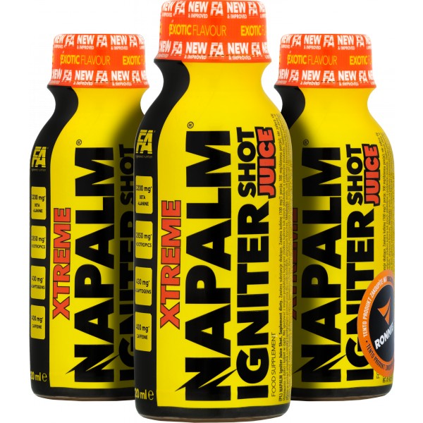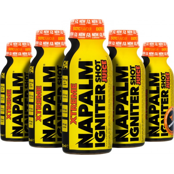 Legendární předtréninková formule obohacená o ovocný koncentrát. Xtreme Napalm Igniter Juice Shot byl obohacen o řadu cenných složek (např. GABA, výtažky z rostlinných adaptogenů, vitamíny skupiny B), které poskytují další podporu během intenzivního tréninku. Díky praktické formě ampulky se přípravek snadno a rychle používá a malá velikost balení nečiní žádné problémy při jeho přenášení na trénink. Optimálně zvolené poměry složek zaručují bezpečný a pevný účinek – výrobek se doporučuje amatérům i profesionálům, kteří hledají nekompromisní řešení.